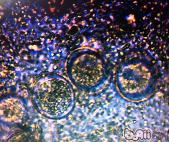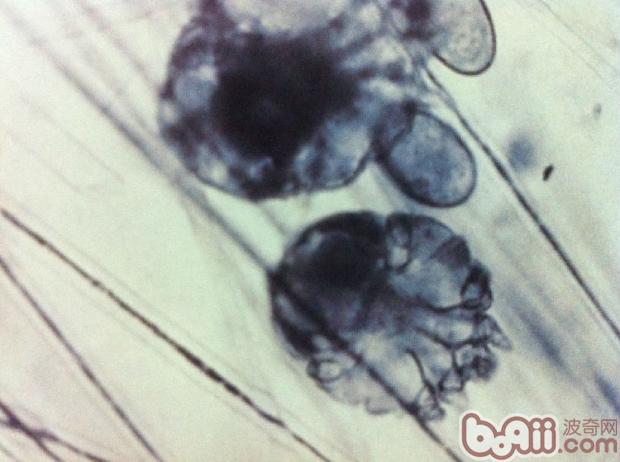 这是在40倍显微镜下放大观察到的疥螨成虫,通常还可以观察到仍然在活动的螨虫,所以一般如果在本院检查时,我们会使用电子显微软件接到电脑上,给狗狗的主人看检查结果,无论结果是否阳性,这样做也可以让主人能清晰看到病情的,也能使检查结果透明化。