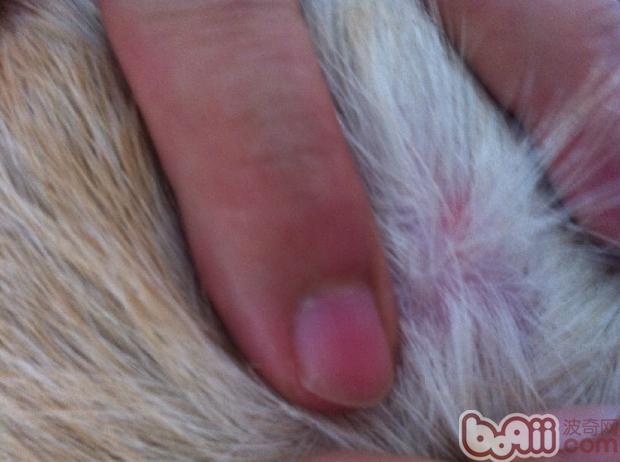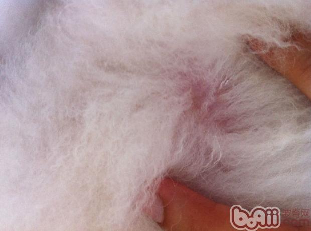 图中是一直瘙痒感一样强烈的贵宾犬背部皮肤,拨开毛根是整片皮肤发红,毛根潮湿。根据发病位置和病变的不同性质,图中患犬更适合先进行一个真菌感染的检查。