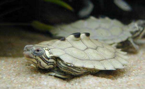 3.看眼睛:广西拟水龟、艾氏拟水龟和黄喉拟水龟的眼珠子都是黑色的;而广西拟水龟眼珠子两边的眼角膜均有小黑点,看过去眼睛似有一条黑线;艾氏拟水龟及黄喉拟水龟只见眼睛的一个黑点;但与广西拟水龟杂交的龟苗和成龟都像广西拟水龟一样眼睛似有一条黑线.看四肢:广西拟水龟四肢黑褐色;艾氏拟水龟、黄喉拟水龟四肢上部灰褐色、下部淡黄色。