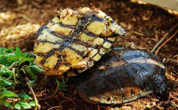 5.看黑斑:广西拟水龟腹甲淡青色,有两条黑色纵白斑纹,黑斑较大块完整,甲桥全黑色;艾氏拟水龟黑斑呈放射状;黄喉拟水龟黑斑较小。