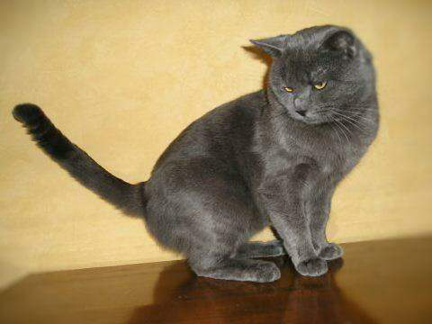 夏特尔猫体型较粗大、长得很结实、稍胖,成年猫的体重可达至7kg,它的肩、胸宽厚,肌肉发达,四肢粗壮有力,走动起来步态高雅,雄猫比雌猫更有力度感。一身蓝灰色的弹性被毛,毛尖为银色,皮毛浓密丛生既厚又柔软,并且有防水性能,属于皮毛略长的短毛种猫。