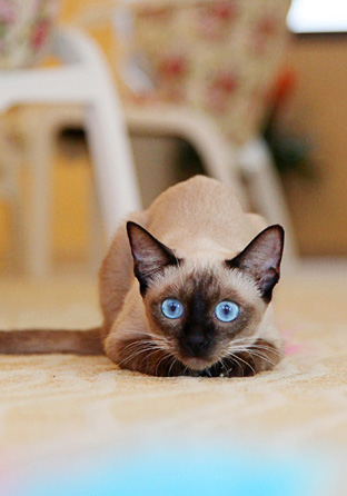 毛色:体毛毛色有海豹毛色、蓝色、巧克力色、紫丁香色、白色、红色等。斑点为海豹色斑点、蓝色斑 点、巧克力色斑点、紫丁香色斑点、奶油色斑点、混合色斑点、山猫色斑点等。体毛毛色与斑点部希望有明显的对比反差。脸面、耳、四肤、趾,尾都有深色斑点.并以同一色者为佳。小猫刚生出时全身被有短的白毛,爪垫、弃、耳皆为粉红色,元天后,色点开始出现,首先是在耳朵处,然后是在弃子、四肢和尾巴处。