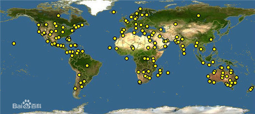 分布于阿富汗、阿尔巴尼亚、阿尔及利亚、安哥拉、安圭拉、安提瓜和巴布达、亚美尼亚、阿鲁巴岛、澳大利亚、阿塞拜疆、巴哈马、巴林、孟加拉国、巴巴多斯、伯利兹、贝宁、百慕大、波斯尼亚和黑塞哥维那、博茨瓦纳、保加利亚、布基纳法索、布隆迪、柬埔寨、喀麦隆、加拿大、开曼群岛、中非共和国、乍得、中国、哥伦比亚、刚果民主共和国、哥斯达黎加、科特迪瓦、克罗地亚、古巴、塞浦路斯、捷克共和国、吉布提、多米尼加、多明尼加共和国、厄瓜多尔、埃及、厄立特里亚、埃塞俄比亚、法国、加蓬、冈比亚、加纳、希腊、瓜德罗普岛、几内亚比绍、海地、洪都拉斯、匈牙利、印度、印度尼西亚、伊朗伊斯兰共和国、伊拉克、以色列、意大利、牙买加、约旦、哈萨克斯坦、肯尼亚、科威特、黎巴嫩、利比里亚、利比亚、卢森堡、马其顿、马达加斯加、马拉维、马来西亚、马里、马耳他、马提尼克岛、毛里塔尼亚、墨西哥、摩尔多瓦、黑山、蒙特塞拉特、摩洛哥、莫桑比克、缅甸、纳米比亚、尼泊尔、尼日尔、尼日利亚、阿曼、巴基斯坦、巴勒斯坦地区、巴拿马、巴布亚新几内亚、菲律宾、葡萄牙、波多黎各、卡塔尔、罗马尼亚、俄罗斯联邦、卢旺达、圣基茨和尼维斯、圣卢西亚、圣文森特和格林纳丁斯、沙特阿拉伯、塞内加尔、塞尔维亚、塞拉利昂、新加坡、斯洛伐克、斯洛文尼亚、索马里、南非、南苏丹、西班牙(加那利群岛)、斯里兰卡、苏丹、斯威士兰、阿拉伯叙利亚共和国、塔吉克斯坦、坦桑尼亚联合共和国、泰国、东帝汶、特立尼达和多巴哥、突尼斯、土耳其、土库曼斯坦、特克斯和凯科斯群岛、乌干达、乌克兰、阿拉伯联合酋长国、美国、乌兹别克斯坦、委内瑞拉玻利瓦尔共和国、越南、也门、赞比亚、津巴布韦。