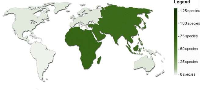 分布于亚洲南部、东南亚、非洲等热带地区。